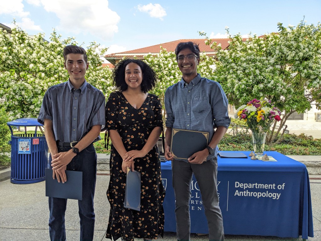 The Anthropology Department is pleased to announce our 2022 student award winners! In addition to granting a record number of departmental awards, we were thrilled to be able to honor seven rising seniors with our first ever Trevor E. Stokol Scholarship, for research which they will be conducting during their senior year. Undergraduate awards were conferred at a ceremony on Monday, April 25. We are so proud of our many impressive students!