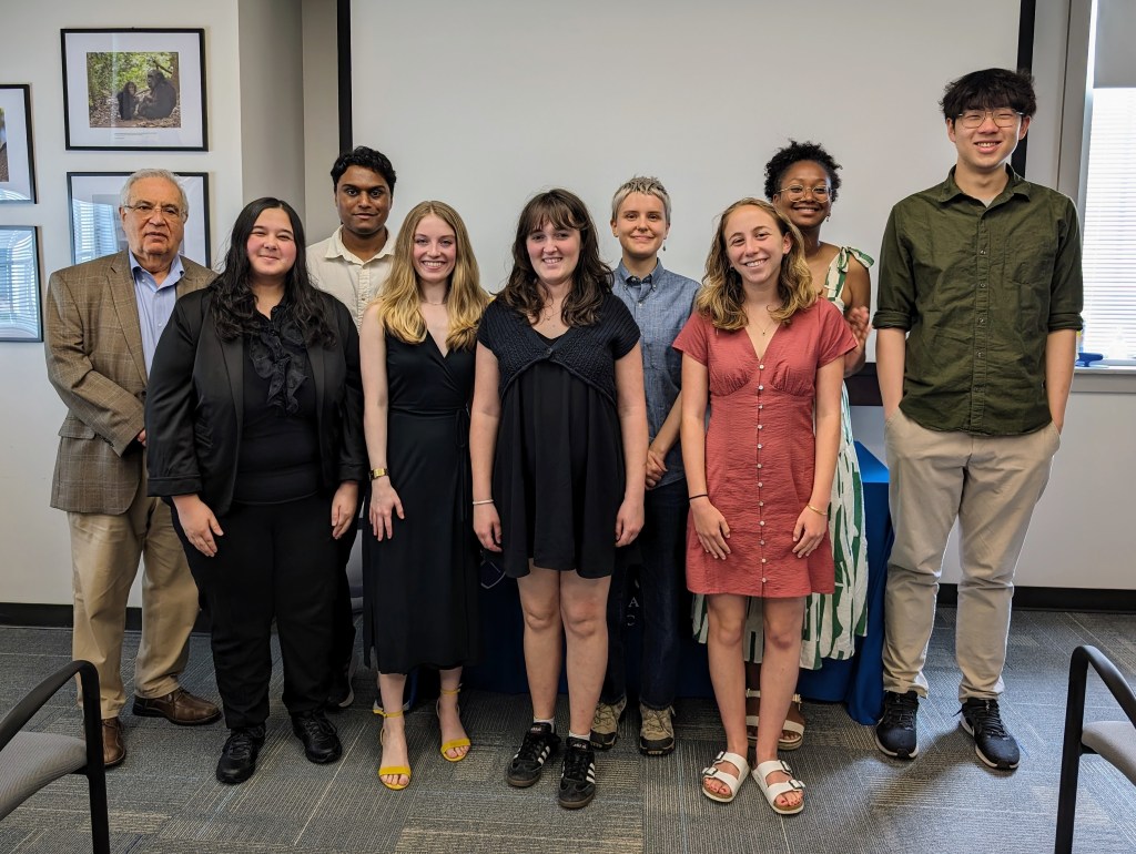 (left to right: Dr. Robert Paul, Sarah Vickery-Hartanto*, Kevin Gunawardana*, Elizabeth Whiteside, Isabel Staton, Ezra Packard, Emily Silver, Sona Davis, Eric Li) *Sarah and Kevin are on track to graduate with honors in December 2024.
